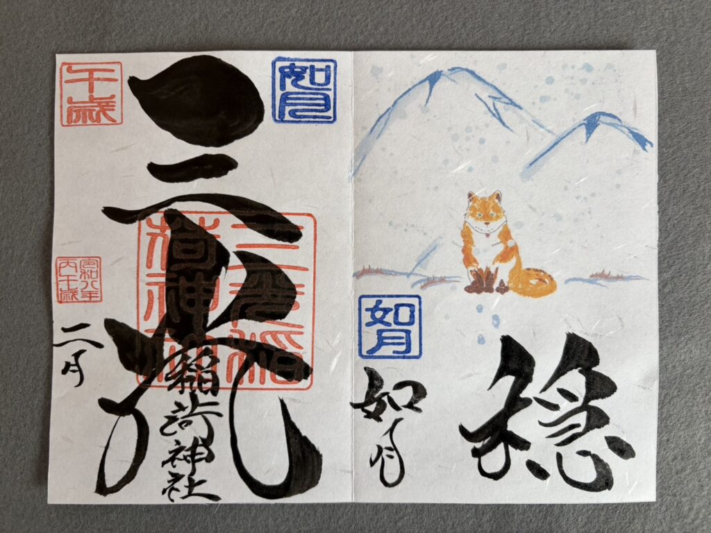 如月『丙午歳』見開き御朱印の奉筆は、丙午歳・三光稲荷神社・二月とさせていただきます。