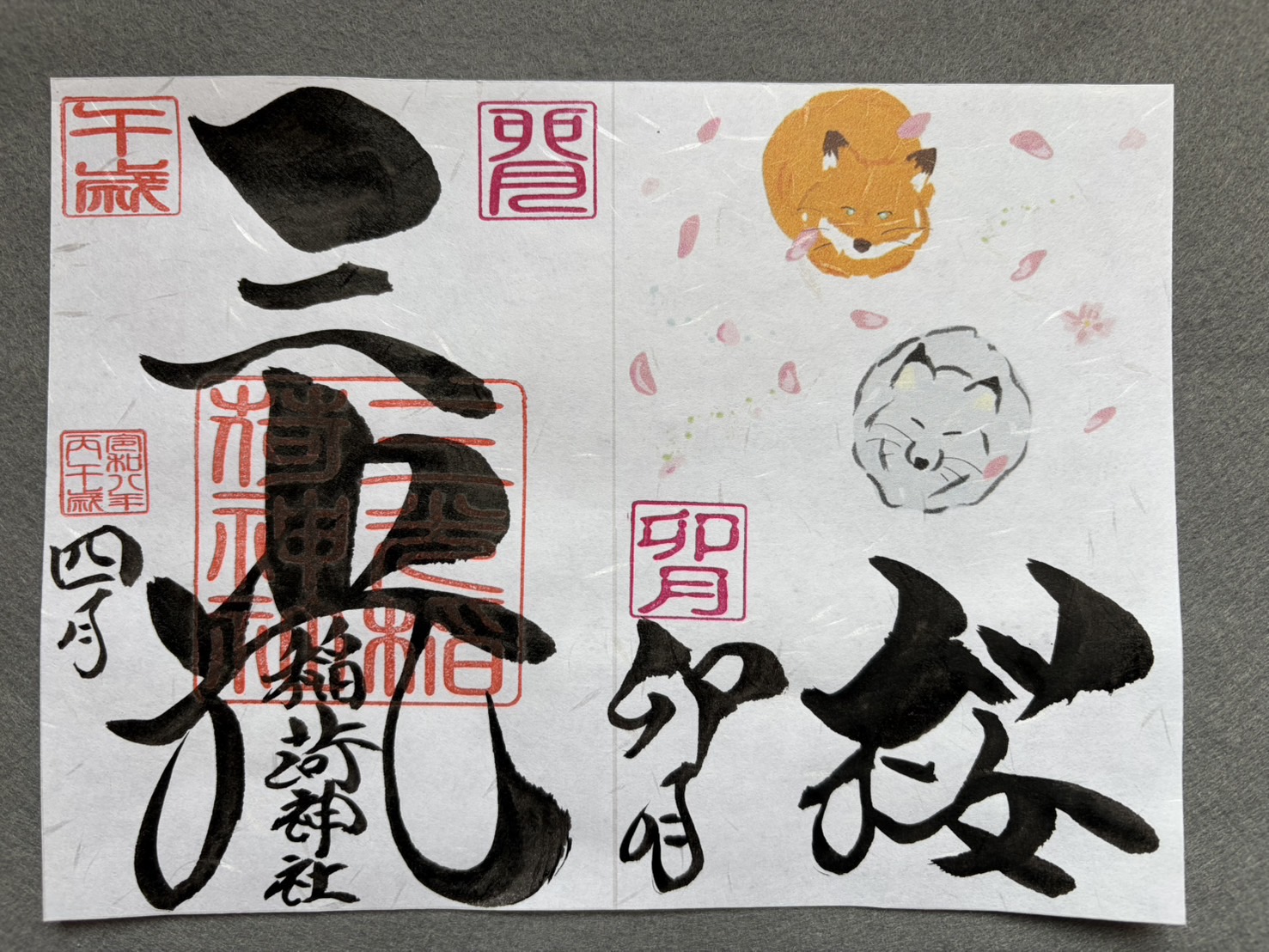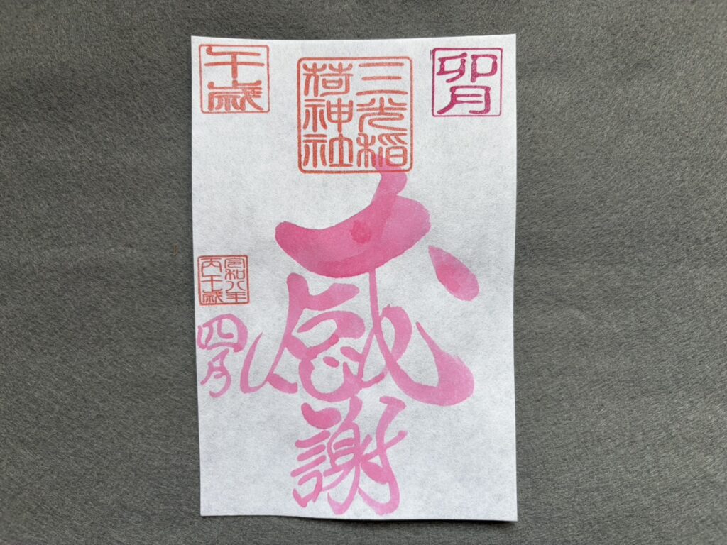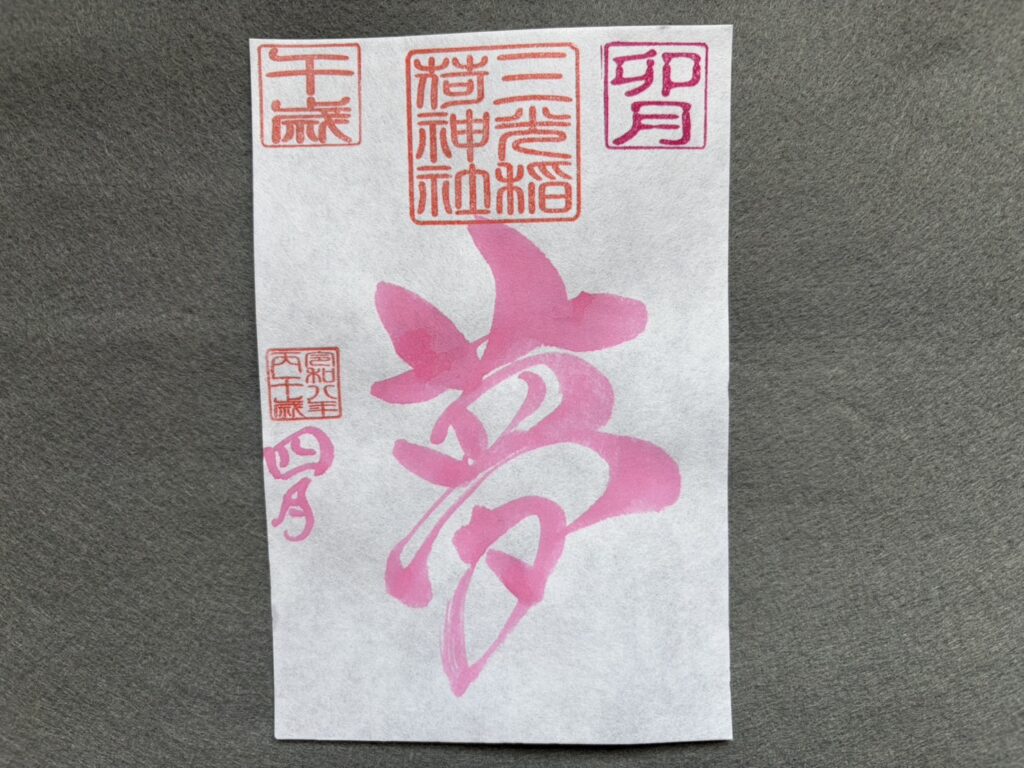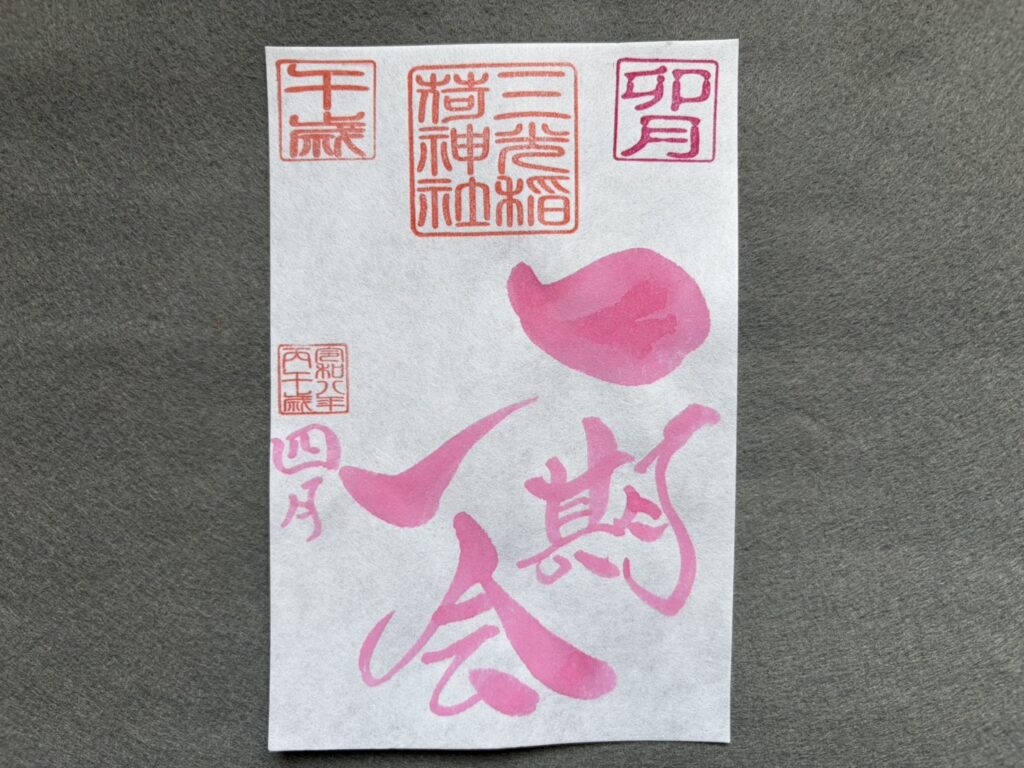 卯月『月替り見開き御朱印』の奉筆は、『桜花』・卯月・三光稲荷神社・四月とさせていただきます。