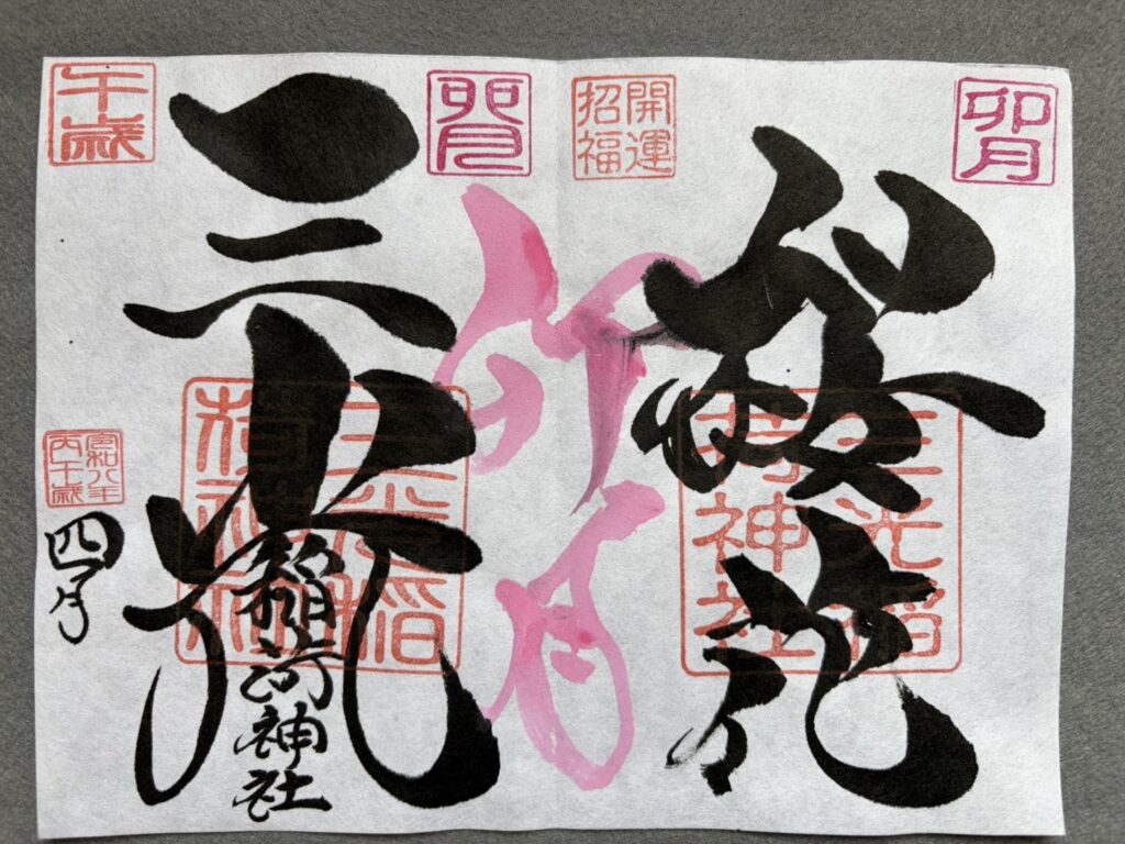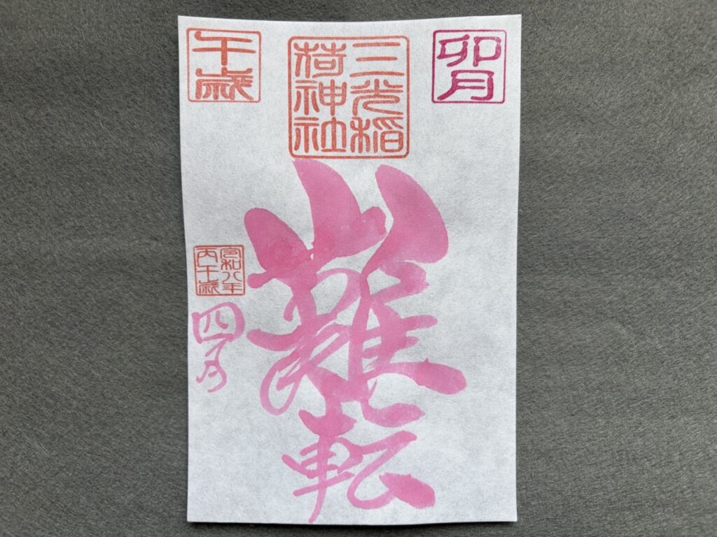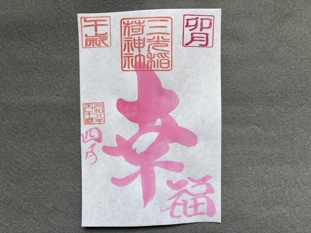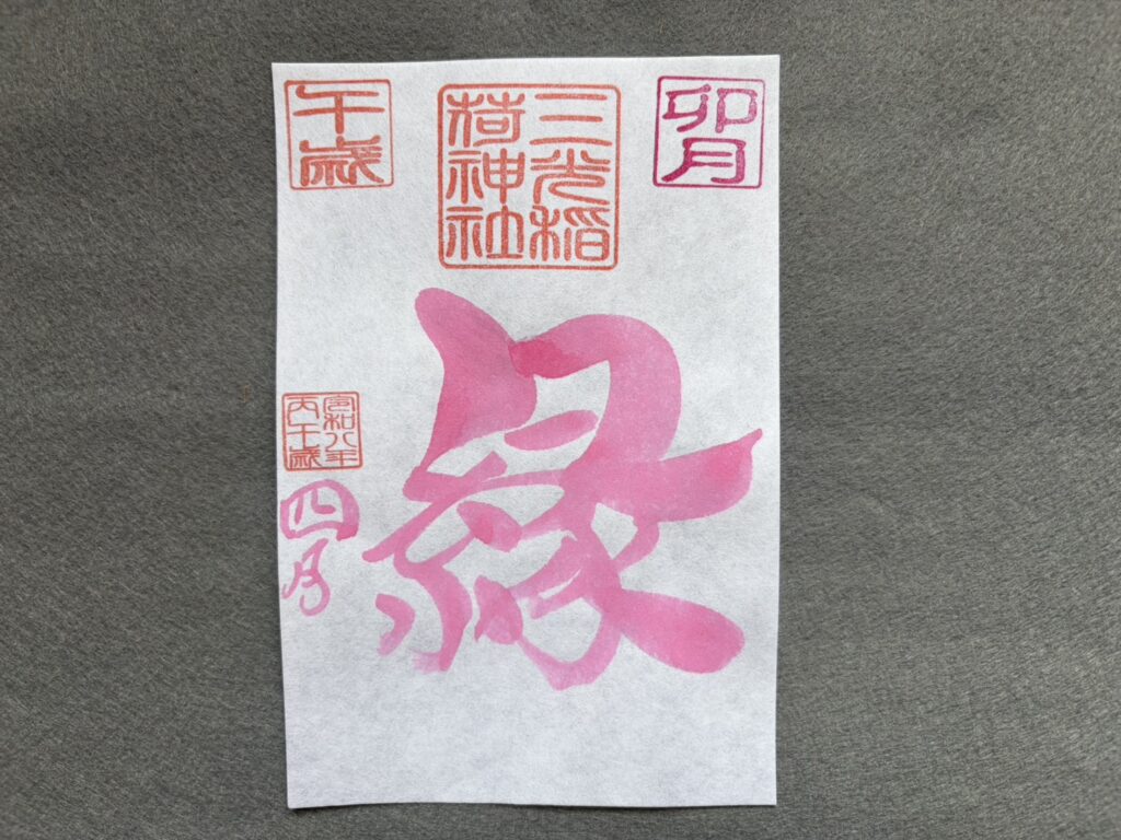 卯月『月替り見開き御朱印』の奉筆は、『桜花』・卯月・三光稲荷神社・四月とさせていただきます。