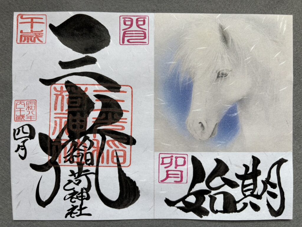 卯月『始期』見開き御朱印の奉筆は、『始期』・三光稲荷神社・四月とさせていただきます。